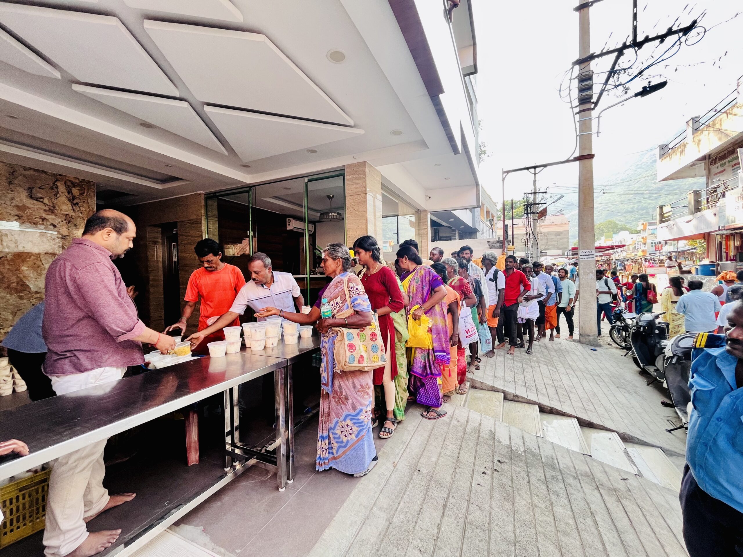 Lingaa Residency periodically providing Food Donation near to Raja Gopuram on Donation basis.